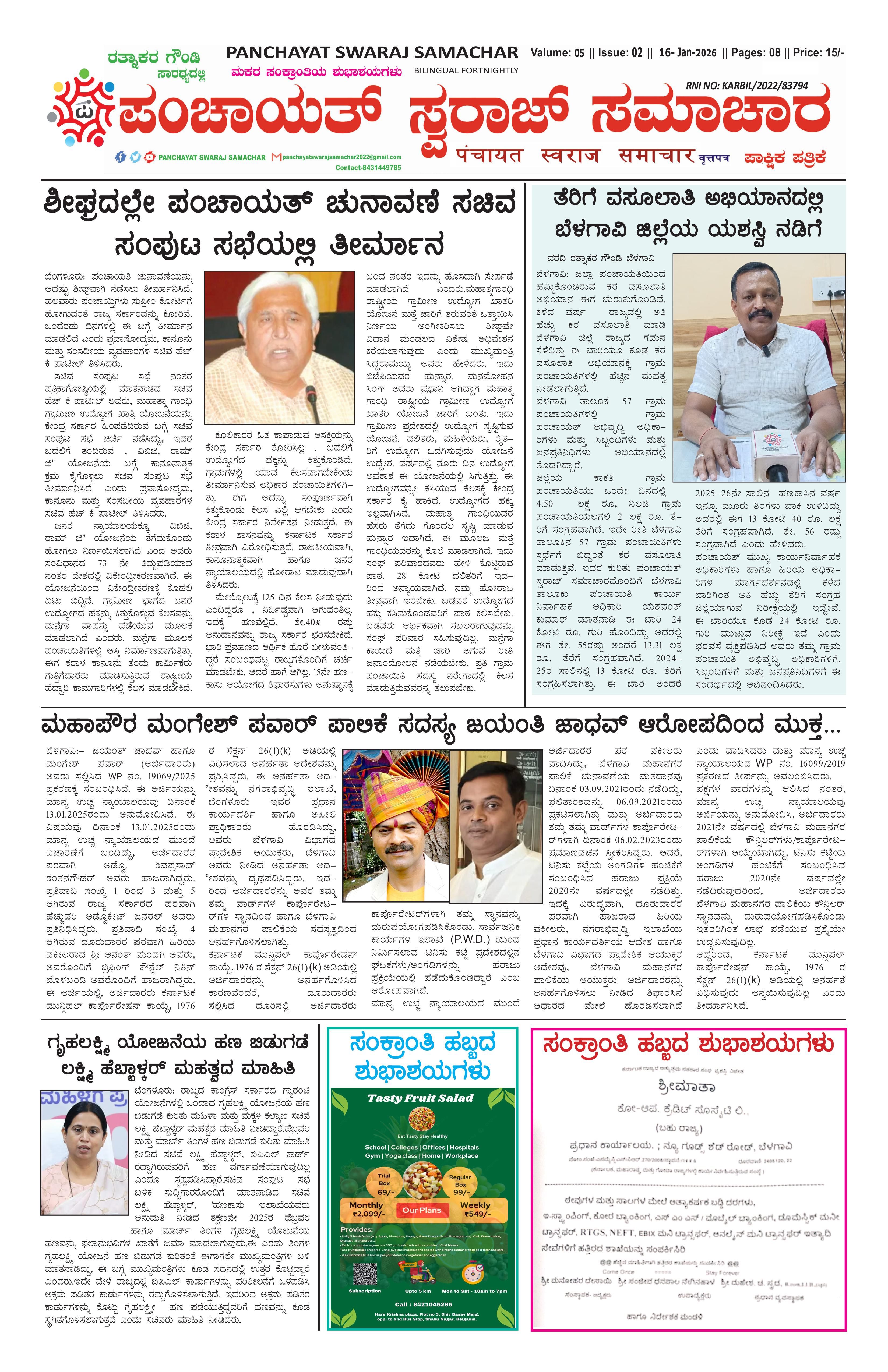 Panchayat Swaraj Samachar e-paper January 16, 2026 << First << 1 >> Last >> Page 1Page 2Page 3Page 4Page 5Page 6Page 7Page 8 × Panchayat Swaraj Samachar e-paper 12345678 << First << 1 >> Last >> 12345678