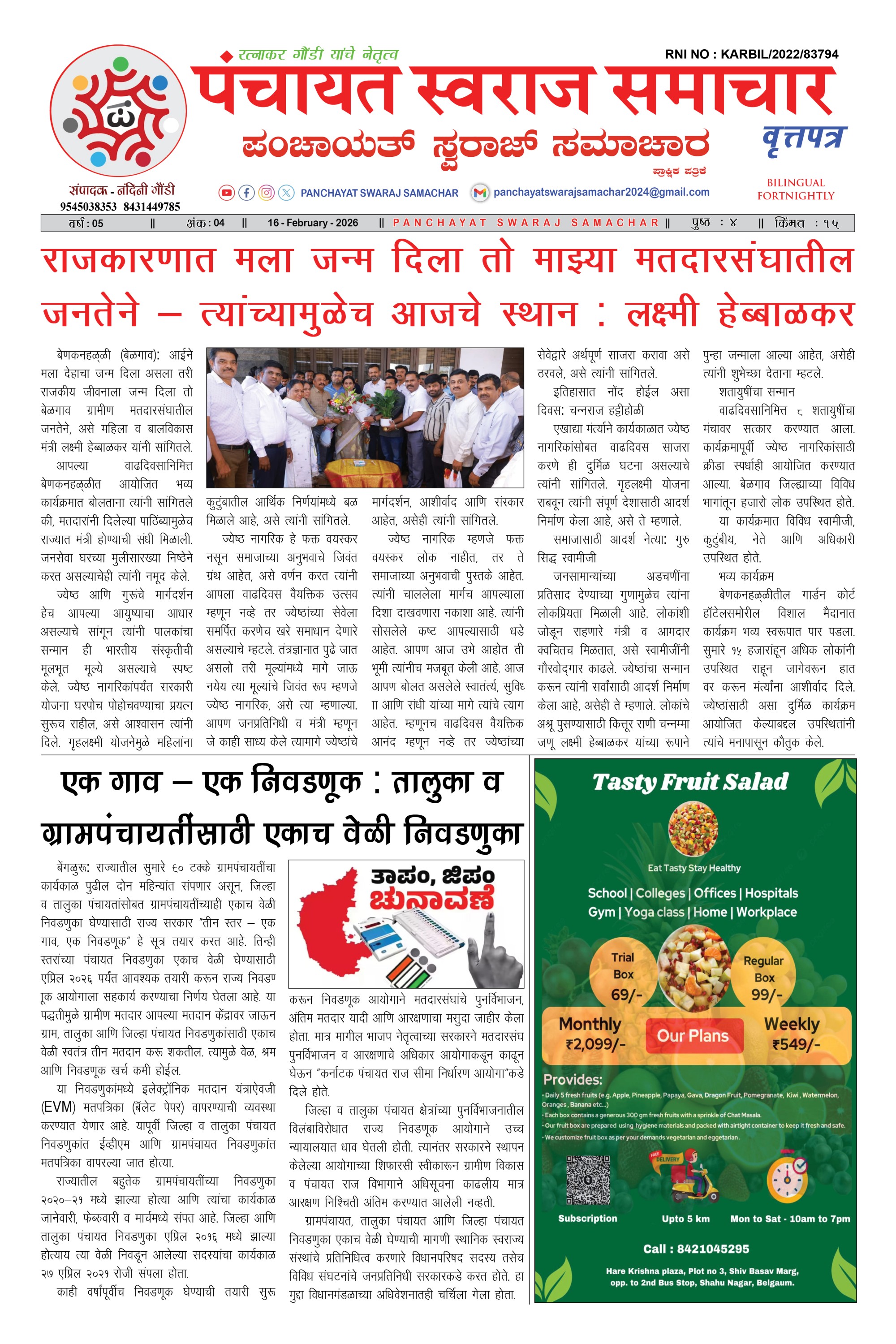 Panchayat Swaraj Samachar Page: 6 February 16, 2026 << First << 6 >> Last >> Page 1Page 2Page 3Page 4Page 5Page 6Page 7Page 8Page 9 × Panchayat Swaraj Samachar 01.jpg02.jpg03.jpg04.jpg05.jpg06.jpg07.jpg08.jpg09.jpg << First << 6 >> Last >> 01.jpg02.jpg03.jpg04.jpg05.jpg06.jpg07.jpg08.jpg09.jpg