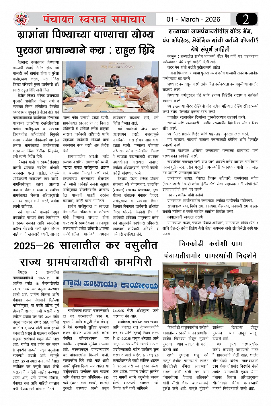 Panchayat Swaraj Samachar e-paper Page: 6 March 01, 2026 << First << 6 >> Last >> Page 1Page 2Page 3Page 4Page 5Page 6Page 7Page 8 × Panchayat Swaraj Samachar e-paper 0102030405060708 << First << 6 >> Last >> 0102030405060708