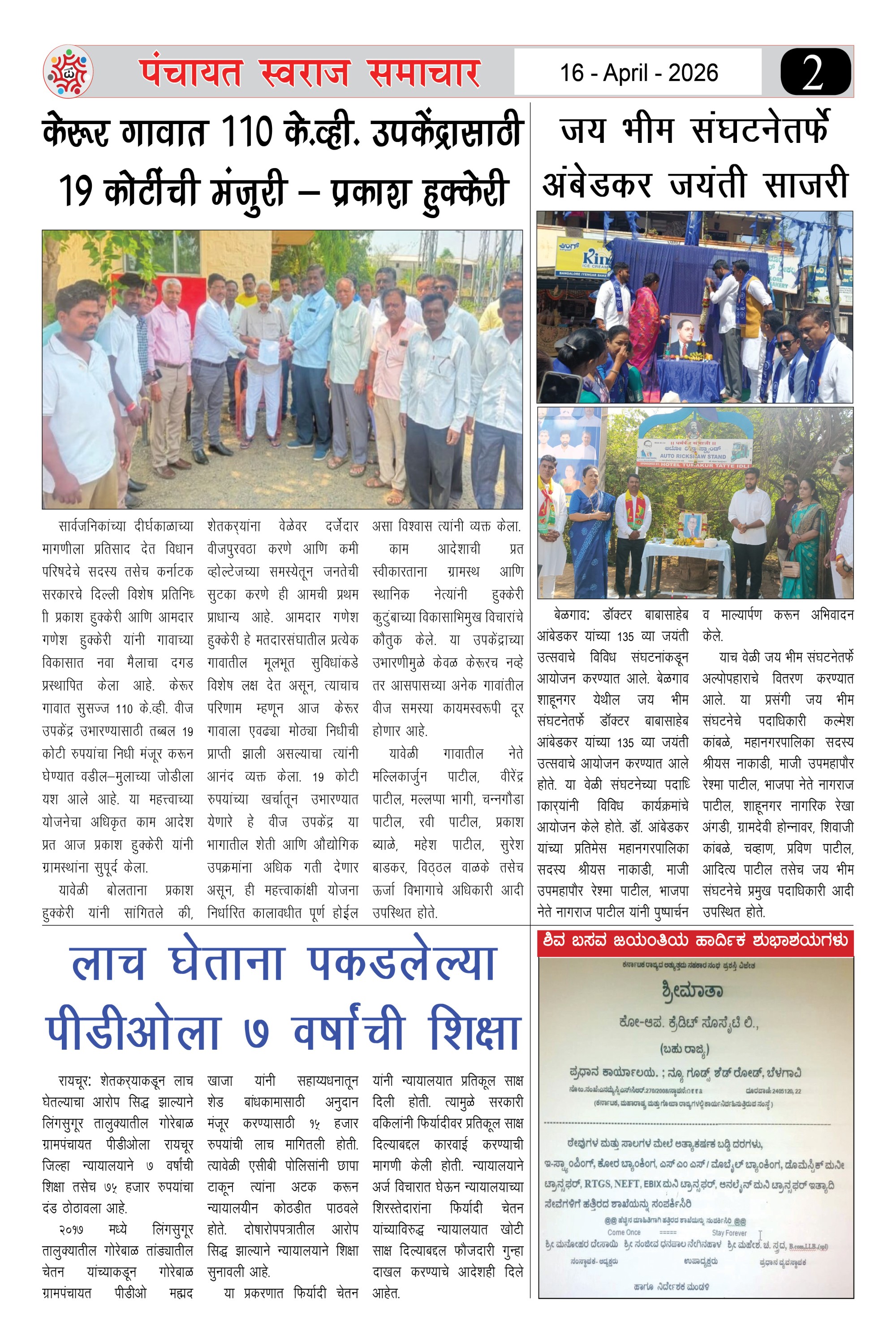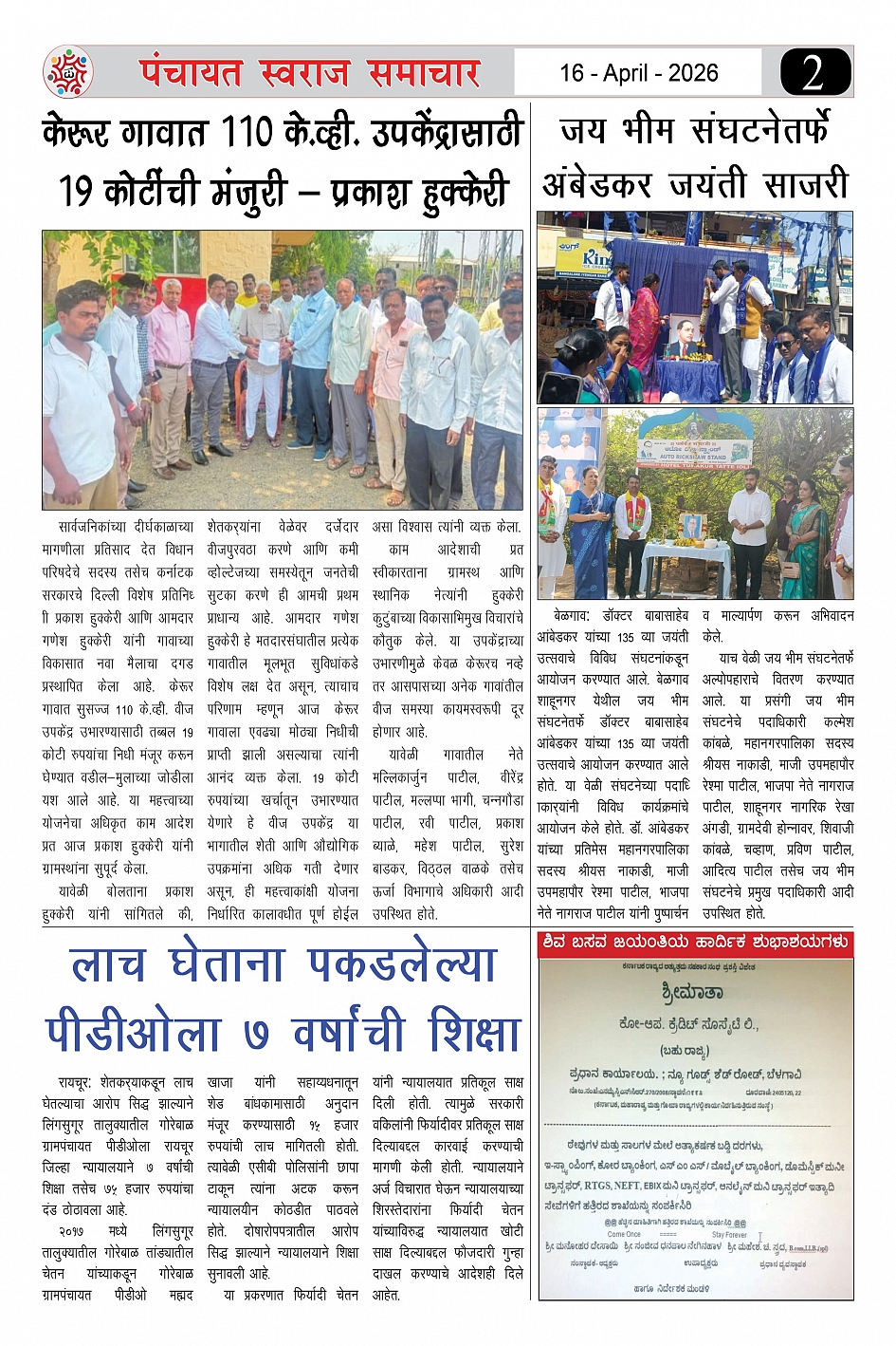 Panchayat Swaraj Samachar Page: 6 April 16, 2026 << First << 6 >> Last >> Page 1Page 2Page 3Page 4Page 5Page 6Page 7Page 8 × Panchayat Swaraj Samachar 01.jpg02.jpg03.jpg04.jpg05.jpg06.jpg07.jpg08.jpg << First << 6 >> Last >> 01.jpg02.jpg03.jpg04.jpg05.jpg06.jpg07.jpg08.jpg